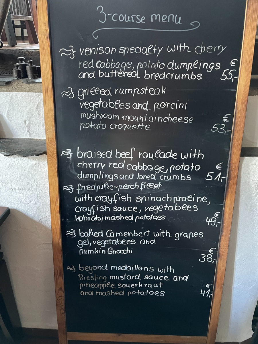 Da wir häufig im Jahr saisonbedingt die Menüwahl wechseln kann es jedeszeit zur Abweichungen kommen.
